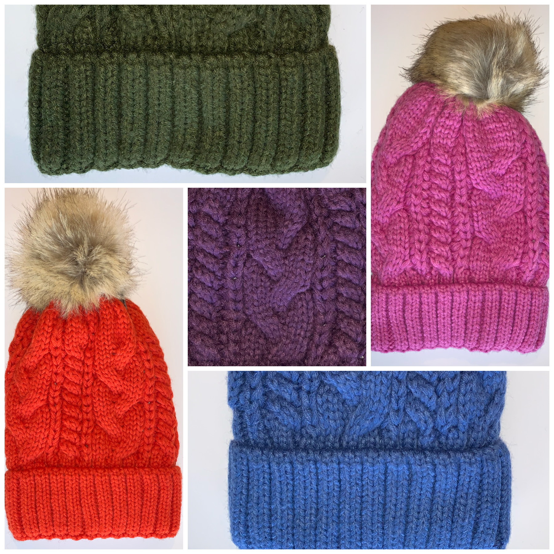 Plush, Blanket Lined, Cable Knit, Pom Pom Beanies