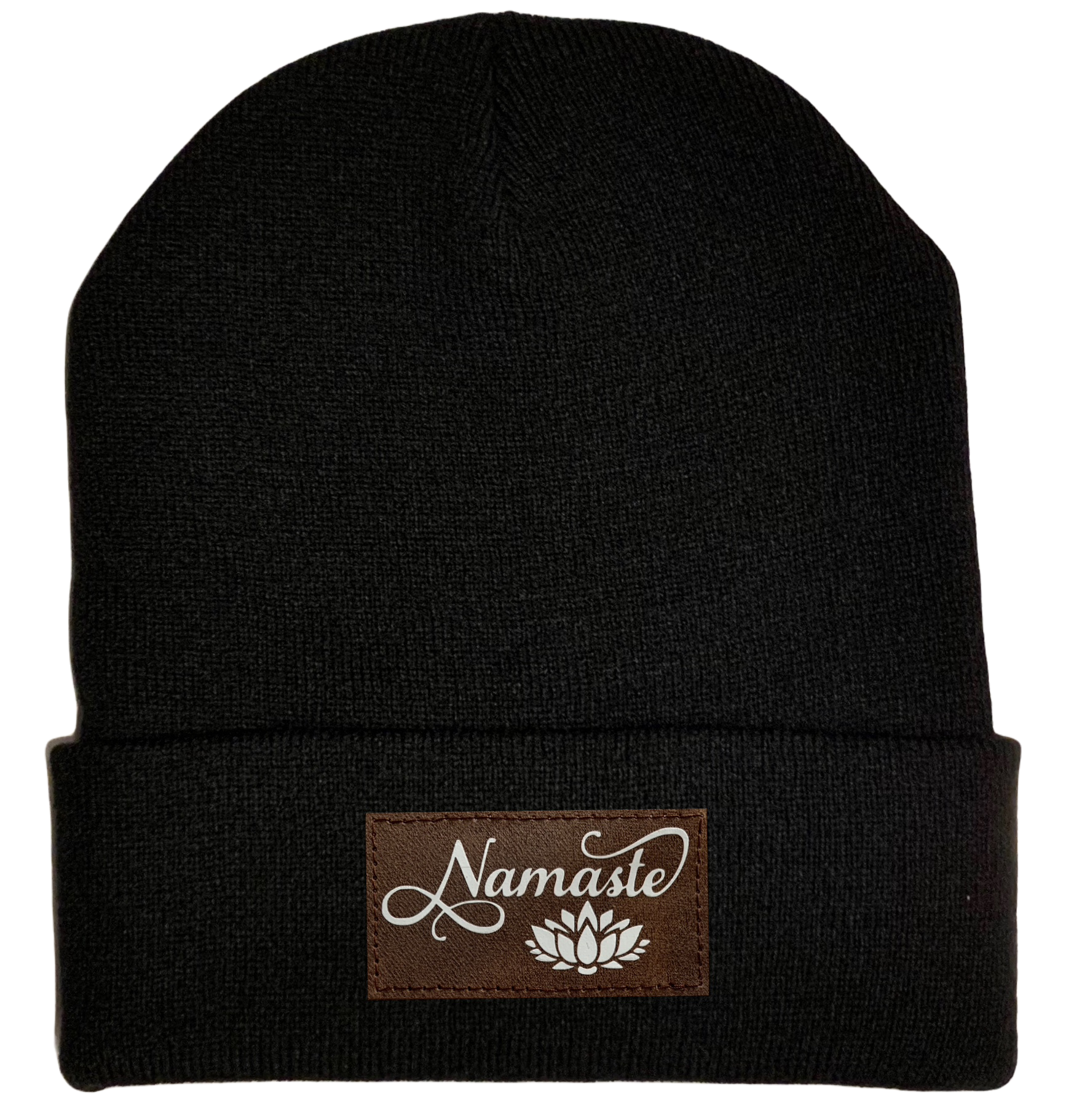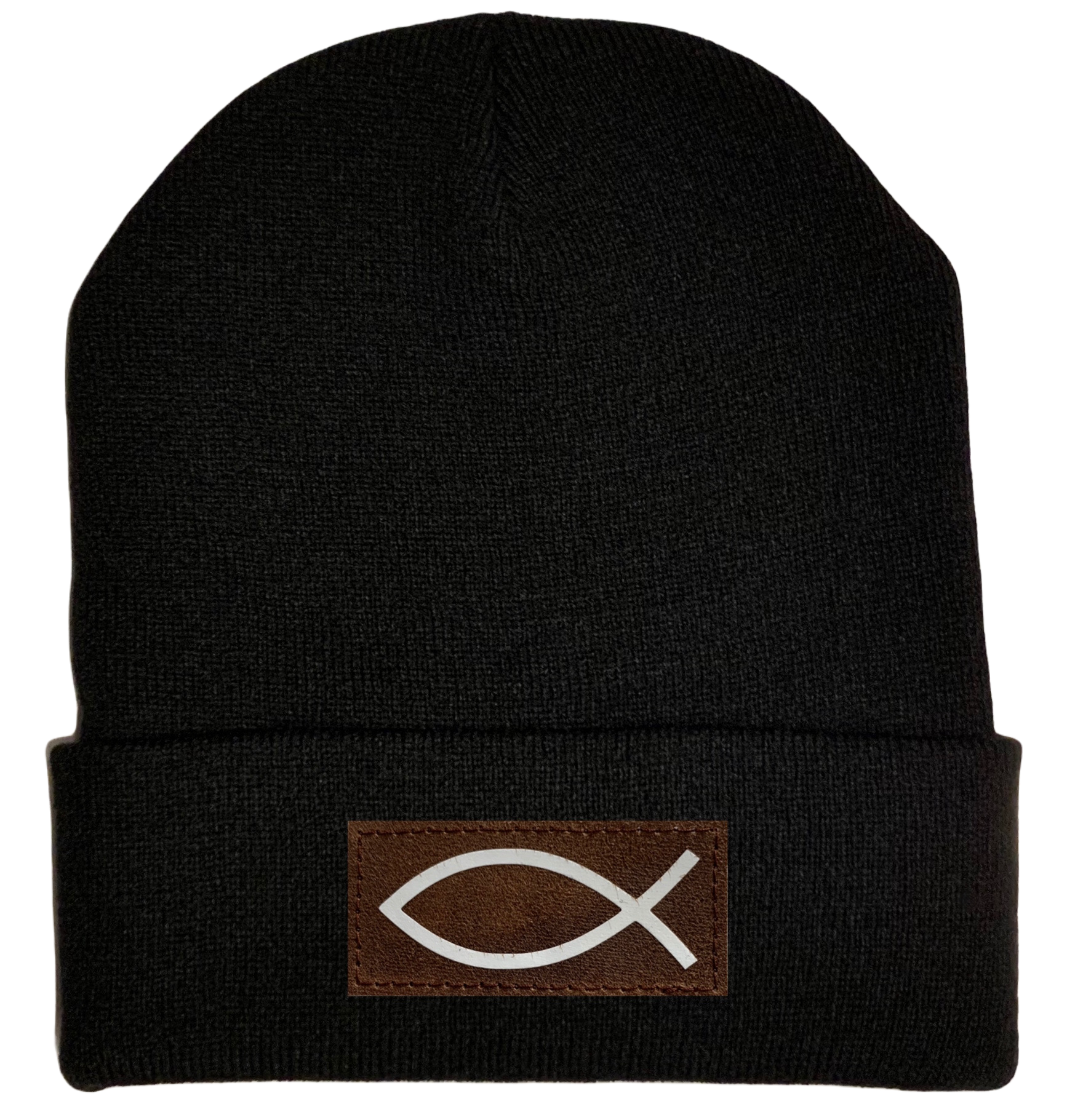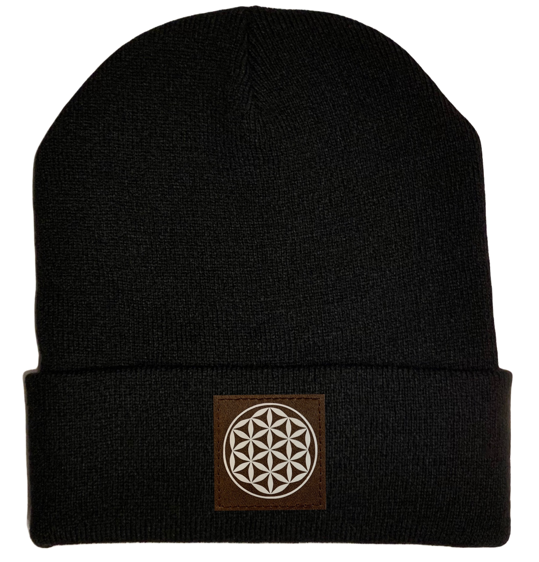 Beanies - Black cuffed Beanie with Unicorn, Om, Phoenix, Namaste, Lotus, Tree of Life, Moons, Infinite Heart, Cristian Fish/ichthus and more