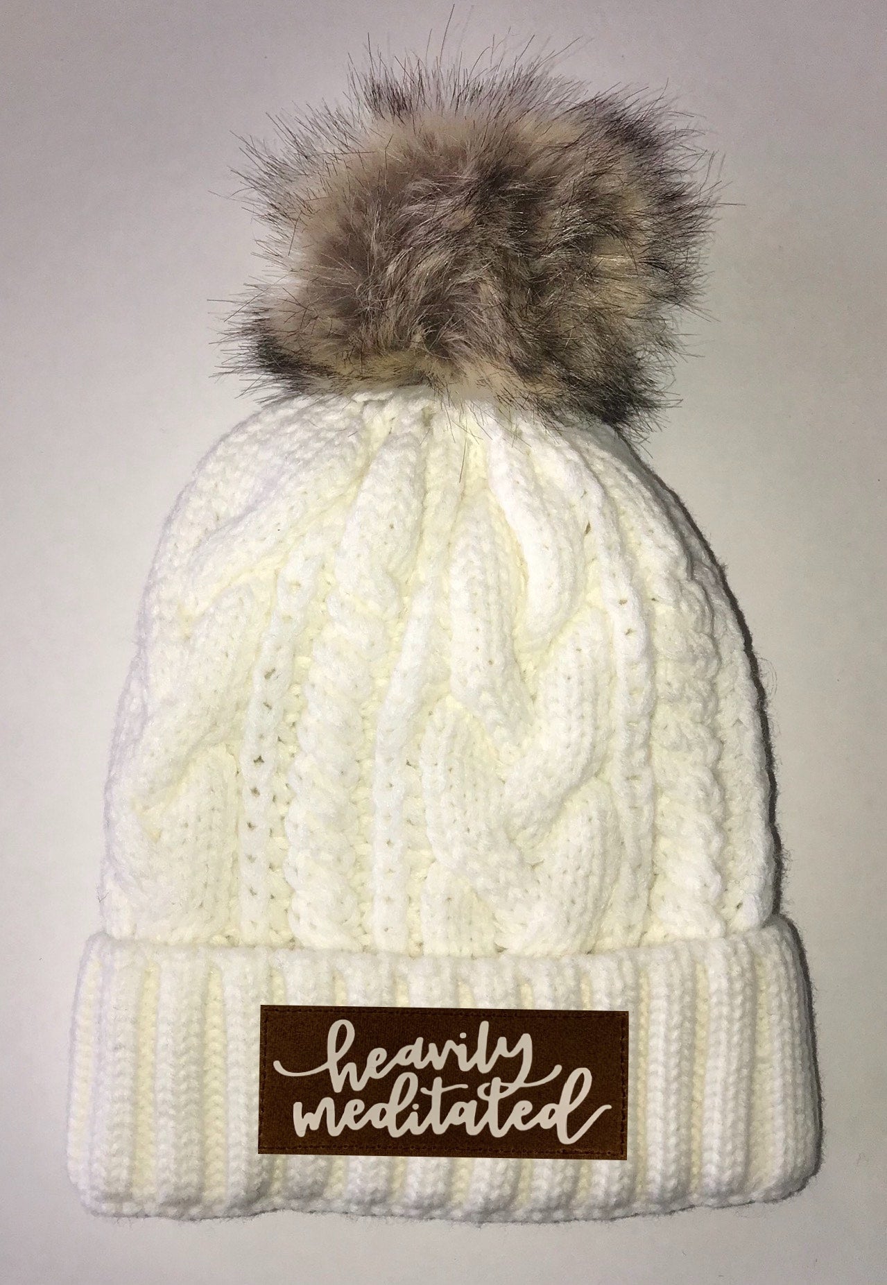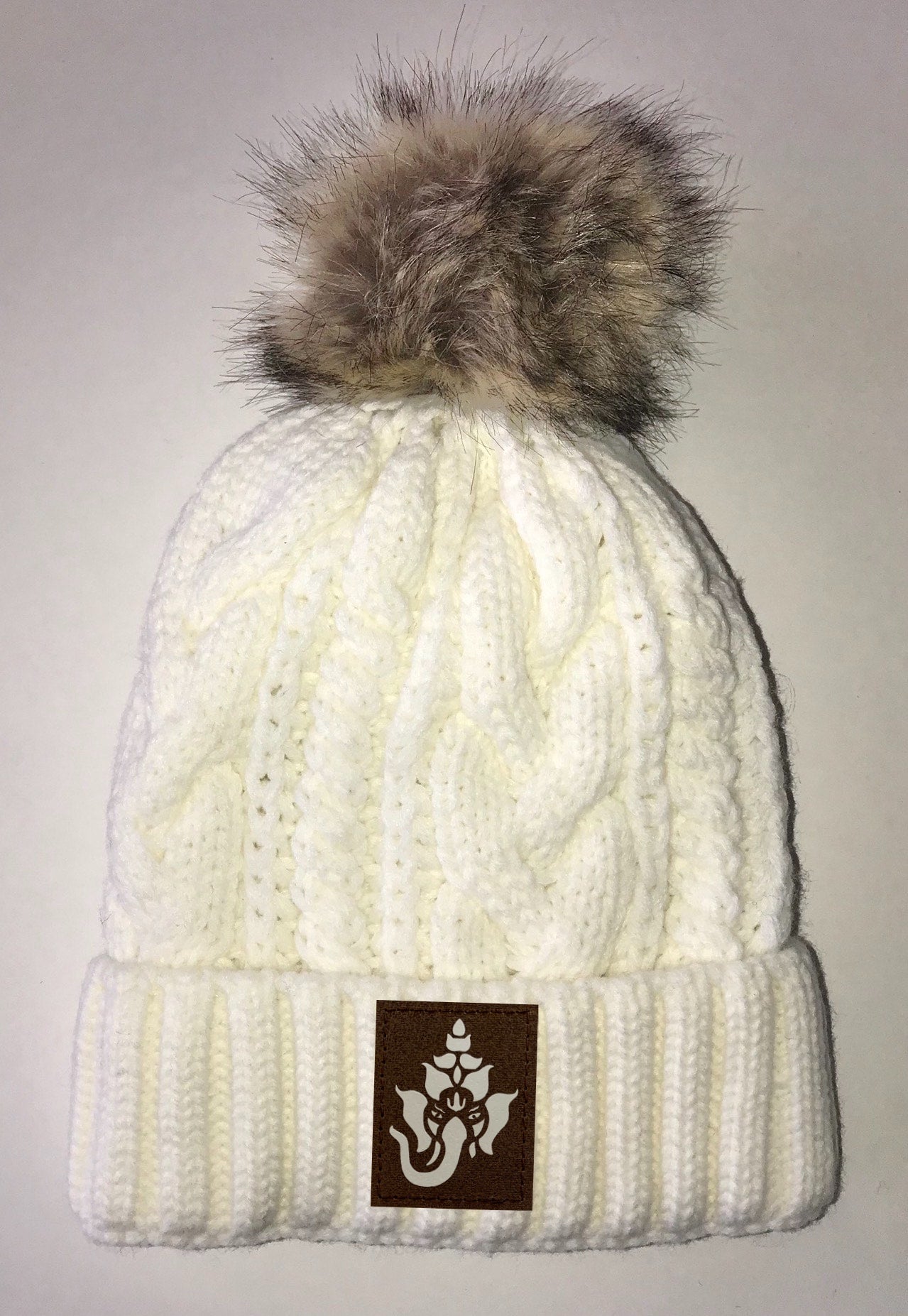 Beanies - Ivory Plush, Blanket Lined Cable Knit, Pom Pom Beanie with The Eye of Horus, Ganesha, Ichthus/Christian Fish, Infinite Love, Buddha, Namaste, Puppy Love, Flower of Life, Moons, Lotus, Tree of Life, Cannabis, Mushrooms and Coffee