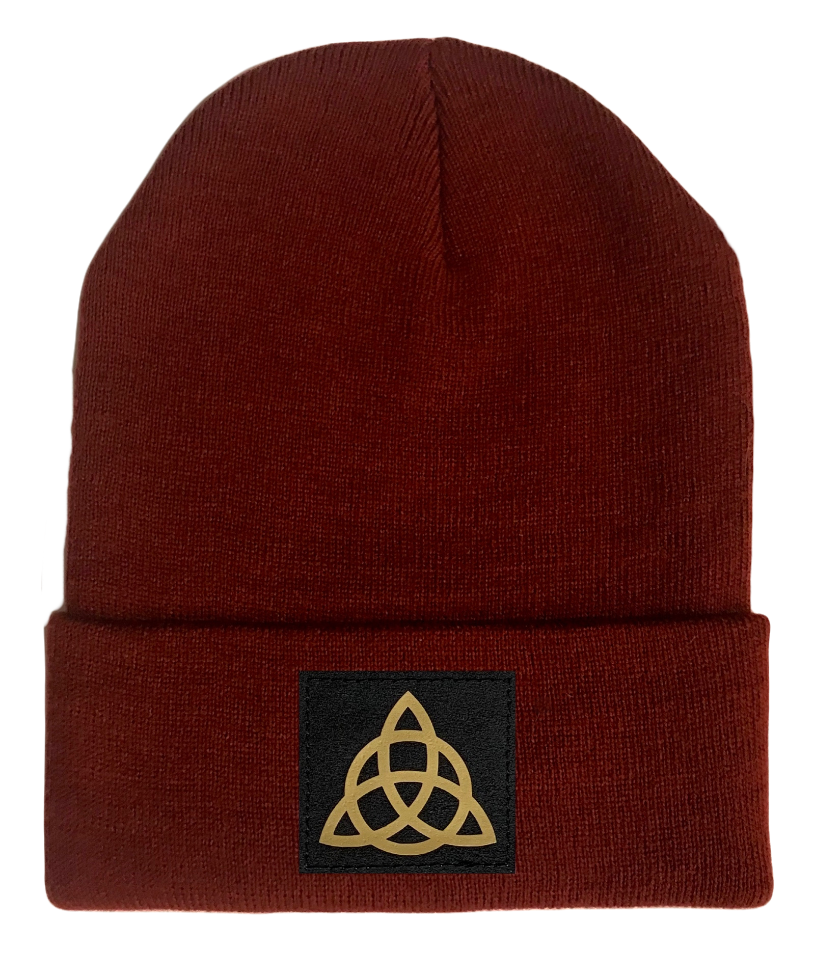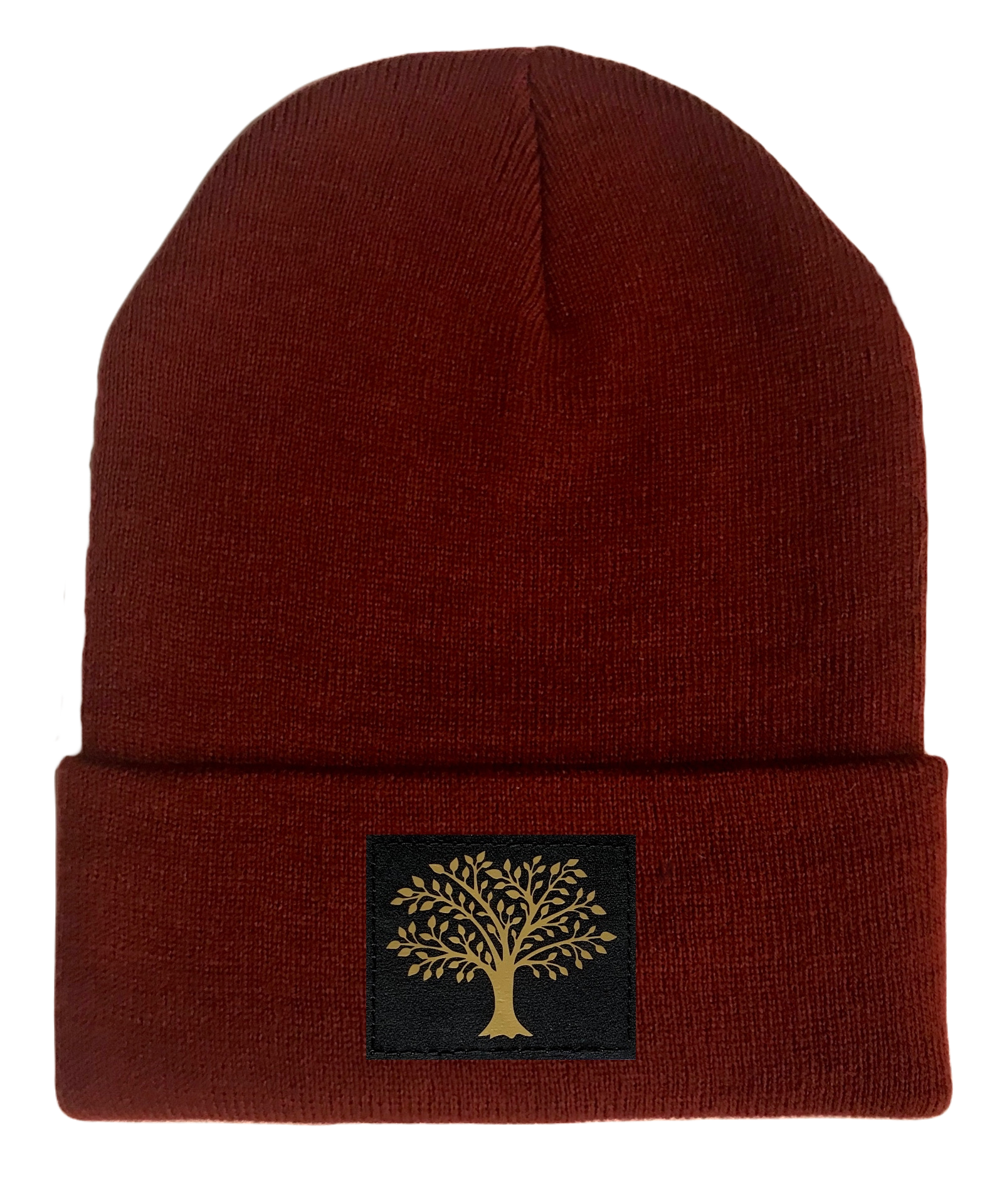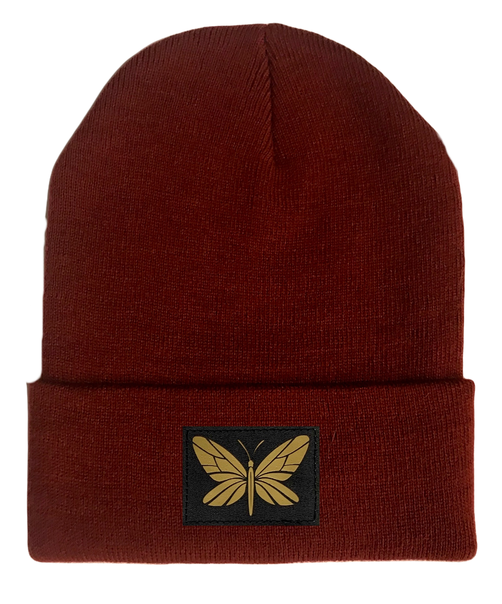 Burgundy Buddha Beanie w Handmade Cannabis, Flower of Life, Merkaba, Om, Eye of Horus, Mushrooms, Compass, Yin Yang Sun, Tree of Life, Triquetra, Ganesha, 420, Moons, Butterfly Patch over your Third Eye